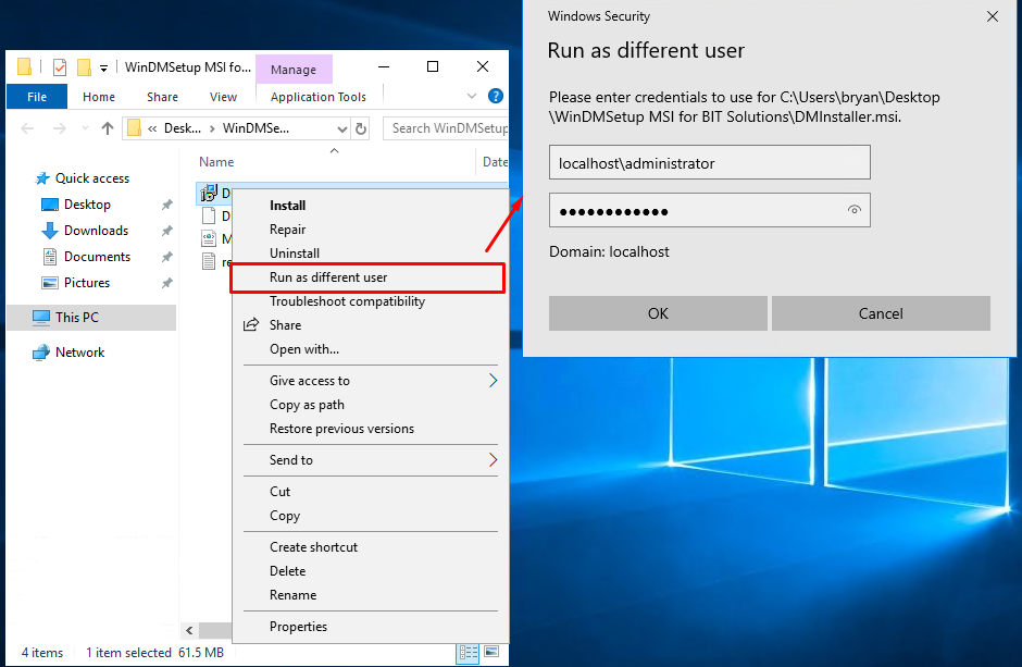 - Copy the installer either onto a network share, or a USB drive that the intended device is able to reach